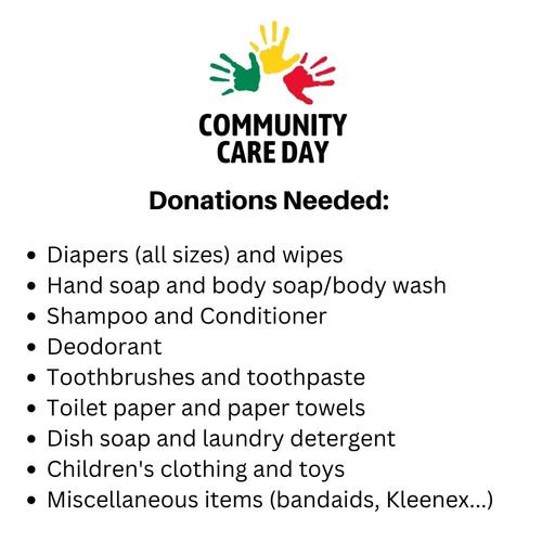 Please bring donations to the Community Care Day Bins in the Fellowship Hall. Thank you for contributing!